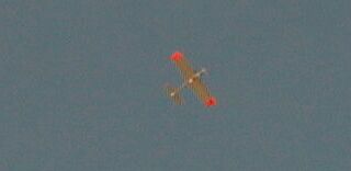 D8.5*P5を使用。10mほどの滑走で楽に離陸できた。ループ、ロール、スプリットSなどをこなす。急上昇時にはモータ音が変わるのがわかる。ちょっと過負荷ぎみ。中スローで飛行させた場合5~6分の飛行が可能。