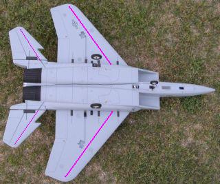 主翼に直径4mmカーボンパイプを、水平尾翼に直径3mmのカーボンパイプを埋め込み接着しています。カーボンパイプはキットに含まれています。