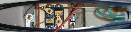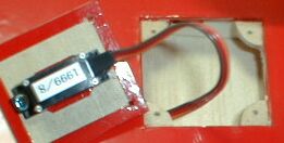 エレベータ用サーボにマイクロサーボを使用したため、サーボ取付用ベニヤ板は自作して、FRP内側に貼り付けた。