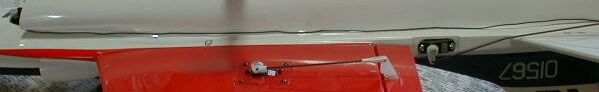 受信機スイッチは胴枠ベニヤ板に両面テープで張り付け、胴体下部からON-OFFできるようにした。