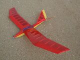 ロッキーⅡ QRP製 超軽量ハンドランチグライダー。揚力重視の翼型をしている。投げやすいように胴体下部にはフィンガーホールがある。また、ショックコード用フックも装備。キットには、リンケージロッド、アルミ製ロッドジョイント、ラダーホーン、補強用マイクログラス、布ゴムが付属している。 | |