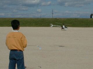 上空は飛行できるのですが、ホバリングがうまくできない。右向きが苦手。もちろん対面はできない。着陸は、自分の正面でフレアーをかけ、少し通り過ぎてから、後ろ向きで寄せてくる始末。
