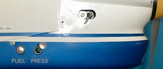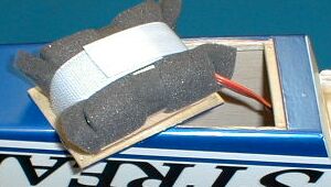 受信機用バッテリーは、胴体下部ハッチに取り付けた。 私の場合、これで重心位置が合った(主翼前縁より145mm)