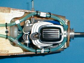 エンジンは、YS製FZ63 4ストロークエンジンを使用。 逆止弁と燃料フィルターもYS製。 T型ジョイントはテトラ製。 グロープラグはOS製タイプF。