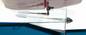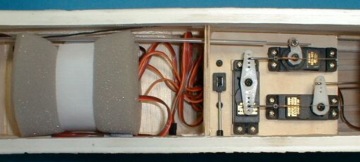 ラダー用サーボ、エレベータ用サーボともにリンケージが胴体中央にくるように配置した。 そのため、サーボベッドを自作した。 ラダー用サーボはエレベータ用サーボより3mm高くしている。 ラダー用ワイヤーはクロスさせていないので、干渉は無です。